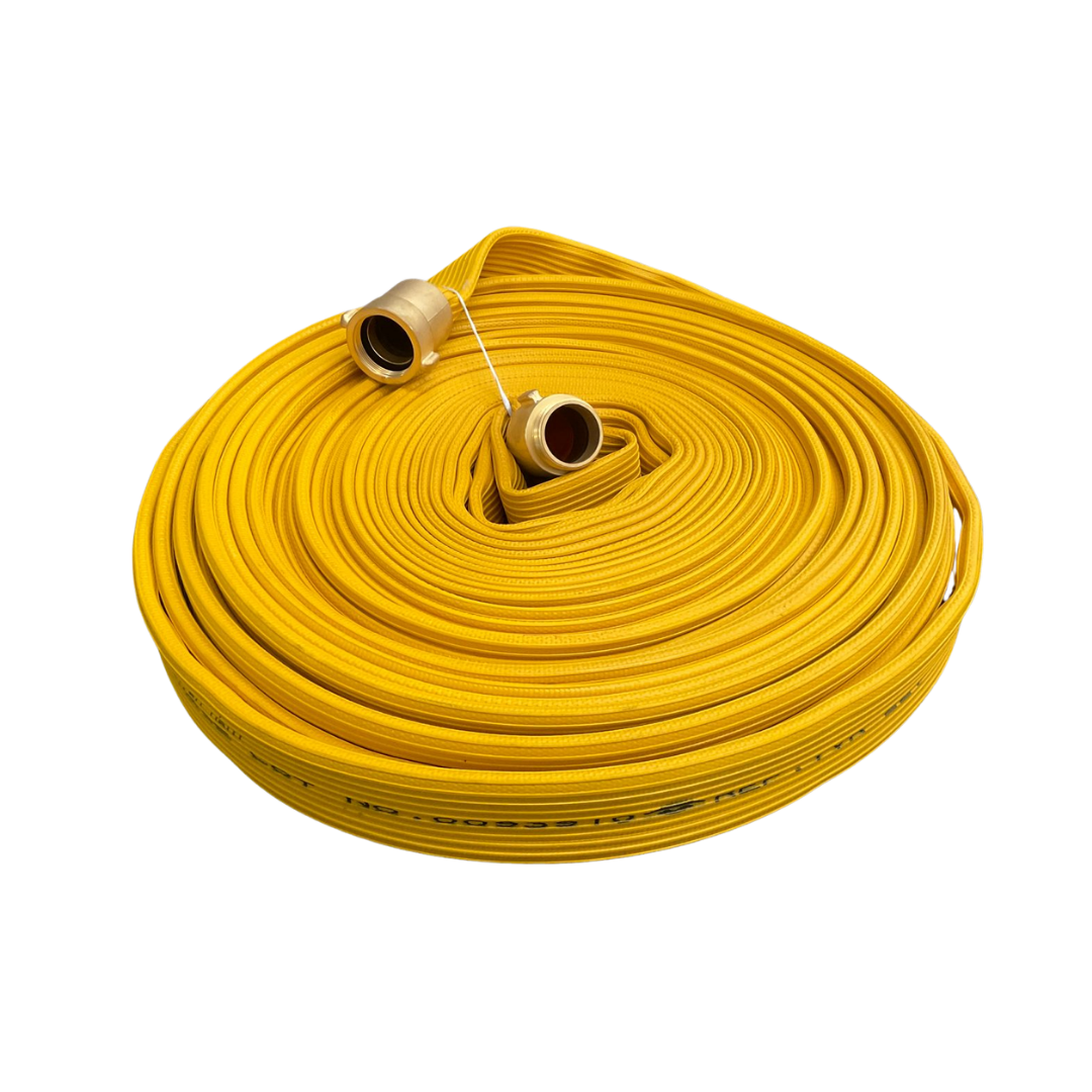 Mangueras contra incendio fabricadas con recubrimiento sintético (Syntec) que brinda mayor resistencia a la abrasión, humedad y productos químicos, ideales para uso industrial y condiciones de trabajo exigentes.